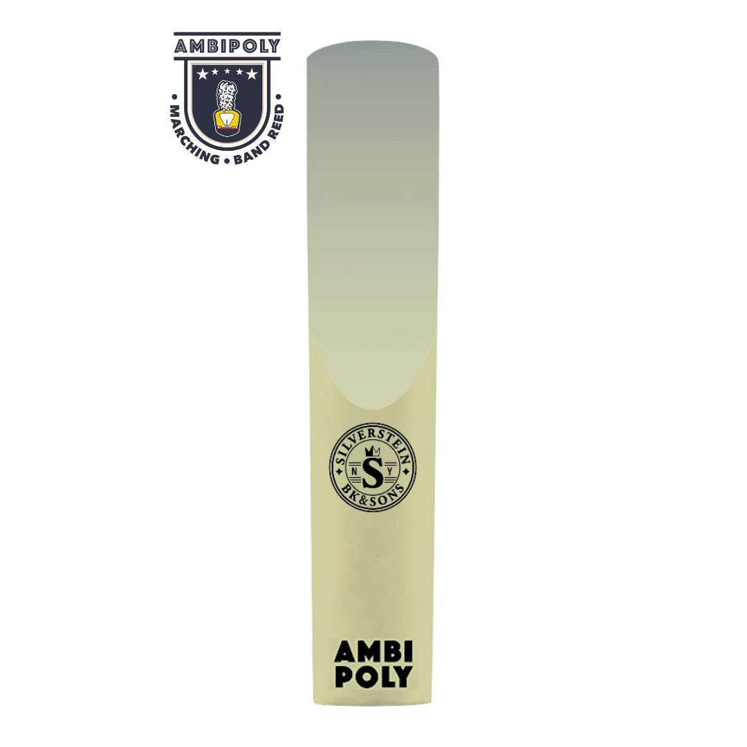 strength 2 - NEW Full Damage Protection w/ 6-Month Reed Life Guarantee!! — The revolutionary AMBIPOLY Marching Band reed redefines the standards of sound, performance and reliability in the world of marching and band music and provides peace of mind for musicians-in-action with guaranteed quality and durability. This reed is crafted of a mouth-safe synthetic material that delivers beautiful tone with clear articulation. Powerful projection makes every note heard with precision. AMBIPOLY performs flawlessly in any environmental condition -- hot or cold, wet or dry -- the reed maintains a consistent pitch and reliable playability that does not degrade with use. Fully adjustable with standard reed tools. Warrantied for 6 months of continuous, consistent performance -- including FREE one-time damage replacement. Lifetime expectancy with proper care of at least 12 months.