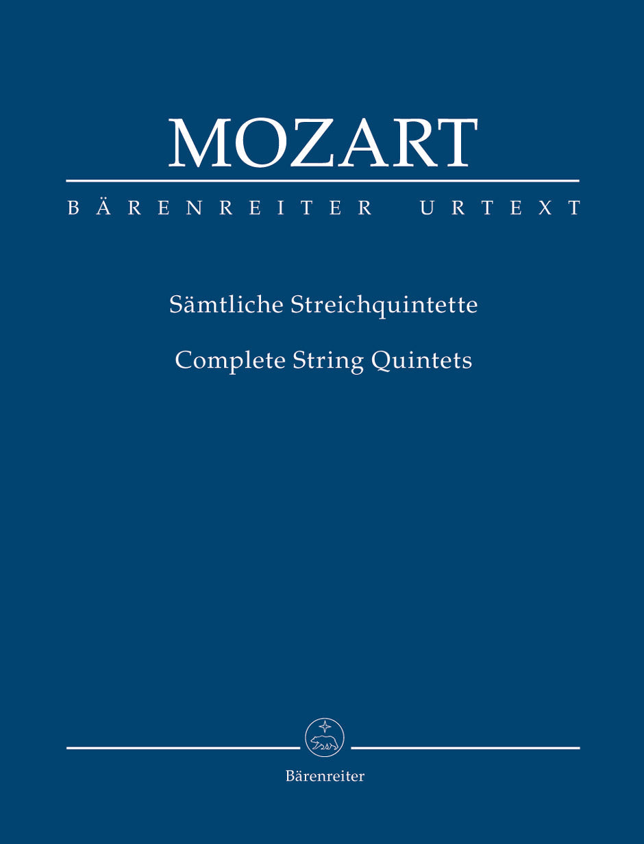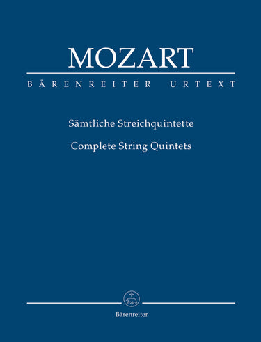 **Title**: Complete String Quintets | **Composer / Author**: Mozart, Wolfgang Amadeus | **Editor**: Schmid, Ernst Fritz / Schmid, Manfred Hermann | **Edition Type**: Study score, Urtext edition, Anthology | **Binding**: Paperback | **Level of Difficulty**: 4.0 | **Printing**: 6th printing 2023 | **Weight**: 492.0 g | **Format**: 22,5 x 16,5 cm | **Pages**: XLII, 212 S. | **Language**: EN | Sample: https://data.baerenreiter.com/NB/TP/TP00159_00_9790006201372_nb_lrg_01.jpg