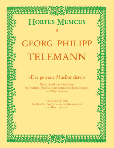 **Title**: Der getreue Musikmeister | **Subtitle**: Eine Auswahl von Spielstücken für Querflöte (Blockflöte oder andere Melodieinstrumente) und Basso continuo | **Composer / Author**: Telemann, Georg Philipp | **Editor**: Degen, Johannes Dietz | **Edition Type**: Performance score, Part | **Scoring/ Instrumentation**: Flute, Descant recorder, Basso continuo | **Binding**: Stapled | **Level of Difficulty**: 3.0 | **Printing**: 13. Aufl. 2013 | **Weight**: 139.0 g | **Format**: 30,0 x 23,0 cm | **Pages**: 16/6/6 S. | **Language**: EN | Sample: https://data.baerenreiter.com/NB/HM/HM00008_00_9790006000098_nb_lrg_01.jpg