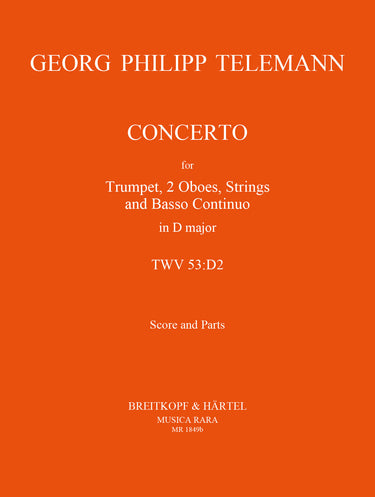 Concerto in D major TWV 53:D2 | trp,2ob,str,bc | Orchestra | Orchestra | Oother solo insts. and orchestra | Baroque | Solo concerto | Sheet Music | score and parts | Block, Robert P. | | 62 | stapled | 23 x 30,5 cm