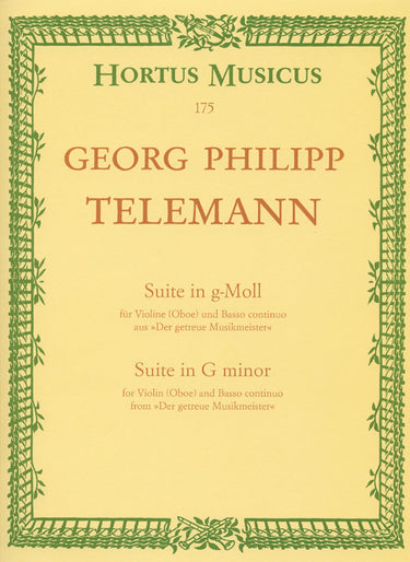 **Title**: Suite for Violin (Oboe) and Bc in G minor TWV 41:g4 | **Subtitle**: Der getreue Musikmeister, Hamburg 1728 | **Composer / Author**: Telemann, Georg Philipp | **Editor**: Lebermann, Walter | **Edition Type**: Performance score, Set of parts | **Scoring/ Instrumentation**: Violin, Oboe, Basso continuo | **Binding**: Stapled | **Level of Difficulty**: 3.0 | **Grade (UK)**: 3 | **Weight**: 87.0 g | **Format**: 30,0 x 23,0 cm | **Pages**: 8/5/5 S. | **Language**: EN | Sample: https://data.baerenreiter.com/NB/HM/HM00175_00_9790006003624_nb_lrg_01.jpg