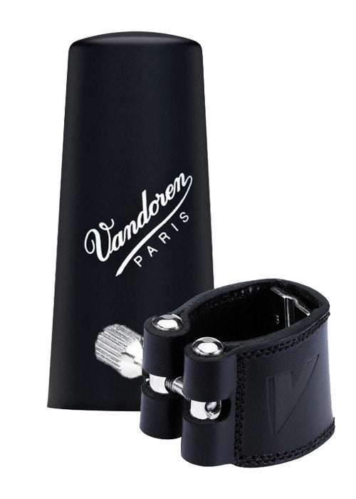 Vandoren Leather Ligature and Plastic Cap for Bass Clarinet; Includes 3 Interchangeable Pressure Plates (LC24P)