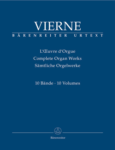**Title**: Complete Organ Works, Volume I-X | **Comments on Version**: 14 volumes at a special set price | **Composer / Author**: Vierne, Louis | **Editor**: Schauerte-Maubouet, Helga | **Edition Type**: Performance score, Anthology, Urtext edition | **Instrumentation**: Organ | **Scoring/ Instrumentation**: Organ | **Binding**: Paperback | **Weight**: 5316.0 g | **Format**: 30,5 x 24,0 cm | **Pages**: 1427 S. | **Language**: EN | Sample: https://data.baerenreiter.com/NB/BA/BA09239_00_9790006563326_nb_lrg_01.jpg