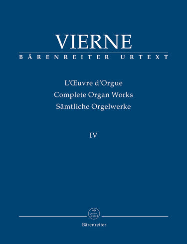 **Title**: Symphony No. 4 op. 32 (1913/14) | **Composer / Author**: Vierne, Louis | **Editor**: Schauerte-Maubouet, Helga | **Preface**: Schauerte-Maubouet, Helga | **Edition Type**: Performance score, Urtext edition | **Instrumentation**: Organ | **Scoring/ Instrumentation**: Organ | **Binding**: Paperback | **Level of Difficulty**: 5.0 | **Printing**: 1st printing 2015 | **Weight**: 330.0 g | **Format**: 30,0 x 23,0 cm | **Pages**: XXVIII, 56 S. | **Language**: EN | Sample: https://data.baerenreiter.com/NB/BA/BA09224_00_9790006534388_nb_lrg_01.jpg