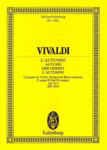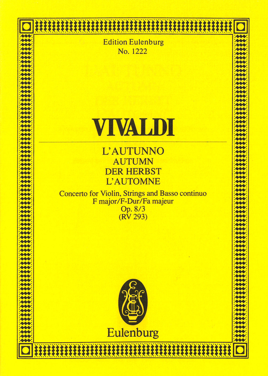 Le quattro stagioni (The four seasons) Op. 8/3 RV 293 | Concerto No. 3 in F major “L'Autunno” (Autumn) | vl,str,bc(hps) | solo: vl - str - bc(hps) | Orchestra | Orchestra | Violin and orchestra | 12' | Baroque | Symphonic poem | Study Score | study score | Launchbury, Simon | | 32 | stapled | 13,5 x 19 cm