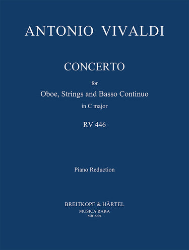 Concerto in C major RV 446 | ob,pno | original scoring: ob,str,bc | Solo instruments | Winds | Oboe and piano (Bc) | Baroque | Sheet Music | piano reduction | Caldini, Sandro | Caldini, Fulvio (KlA) | 20 | stapled | 23 x 30,5 cm