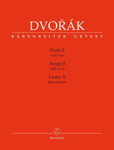 **Title**: Songs II for High Voice and Piano | **Comments**: Replaces H 1757, H 1975, H 2829, H 1831, H 2195, H 2227 | **Composer / Author**: Dvorak, Antonin | **Editor**: Vejvodová, Veronika | **Preface**: Kosák, Michal | **Edition Type**: Singing Score, Anthology, Urtext edition | **Scoring/ Instrumentation**: High voice, Piano | **Binding**: Paperback | **Level of Difficulty**: 3.0 | **Printing**: 1st printing 2017 | **Language of Text Part**: Czech, English, German | **Weight**: 622.0 g | **Format**: 30,0 x 23,0 cm | **Pages**: XXX, 137 S. | **Language**: EN | Sample: https://data.baerenreiter.com/NB/BA/BA11517_00_9790260107984_nb_lrg_01.jpg