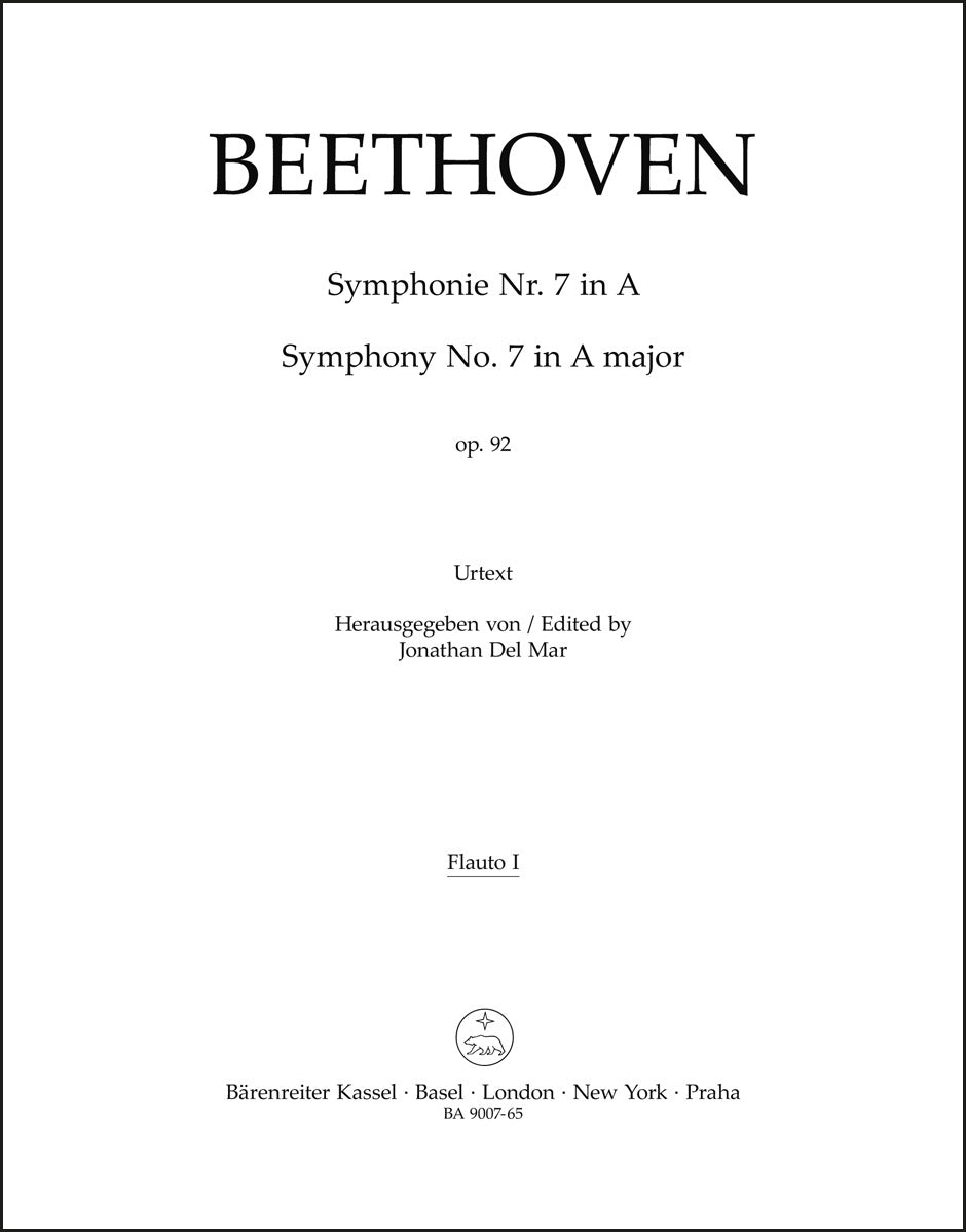 **Title**: Symphony no. 7 in A major op. 92 | **Composer / Author**: Beethoven, Ludwig van | **Editor**: Del Mar, Jonathan | **Edition Type**: Wind set, Urtext edition | **Scoring/ Instrumentation**: Flutes (2), Oboes (2), Clarinets (2), Bassoons (2), Horns (2), Trumpets (2), Timpani | **Binding**: Stapled | **Weight**: 644.0 g | **Format**: 32,5 x 25,5 cm | **Pages**: 16/11/15/11/12/12/12/12/12/12/8/8/11 S. | **Language**: EN | Sample: https://data.baerenreiter.com/NB/BA/BA09007_65_9790006500437_nb_lrg_01.jpg