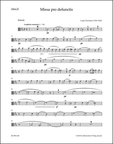 **Title**: Requiem in C minor | **Subtitle**: Missa pro defunctis | **Composer / Author**: Cherubini, Luigi | **Editor**: Schellevis, Hans | **Edition Type**: Part, Urtext edition | **Scoring/ Instrumentation**: 2. Viola | **Binding**: Stapled | **Weight**: 83.0 g | **Format**: 32,5 x 25,5 cm | **Pages**: 20 S. | **Language**: EN | Sample: https://data.baerenreiter.com/NB/BA/BA08961_80_9790006559299_nb_lrg_01.jpg