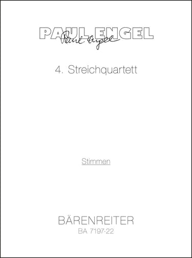**Title**: 4. Streichquartett (1988) | **Subtitle**: Panta rhei | **Composer / Author**: Engel, Paul | **Edition Type**: Set of parts | **Instrumentation**: String quartet | **Scoring/ Instrumentation**: 1. Violin, 2. Violin, Viola, Violoncello | **Binding**: in a folder | **Printing**: 3. Aufl. 2013 | **Weight**: 240.0 g | **Format**: 31,5 x 23,5 cm | **Pages**: 16/16/16/16 S. | **Language**: EN | Sample: https://data.baerenreiter.com/NB/BA/BA07197_22_9790006486045_nb_lrg_01.jpg