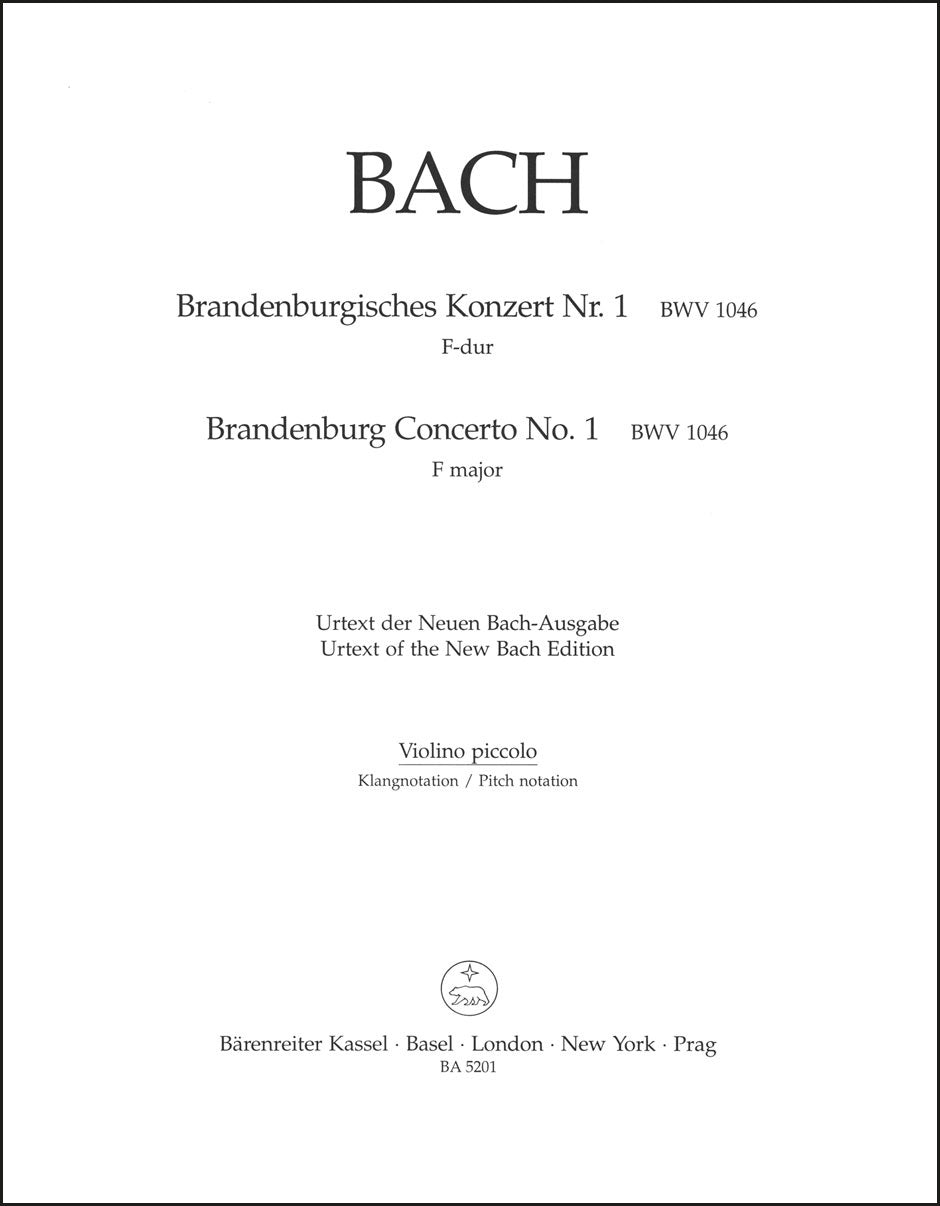 **Title**: Brandenburg Concerto No. 1 and Original Version "Sinfonia" in F major BWV 1046, BWV 1046a | **Comments on Version**: pitch notation - notated the way it sounds | **Composer / Author**: Bach, Johann Sebastian | **Editor**: Besseler, Heinrich | **Edition Type**: Part, Urtext edition | **Scoring/ Instrumentation**: Violino piccolo | **Binding**: Stapled | **Weight**: 30.0 g | **Format**: 32,5 x 25,5 cm | **Pages**: 8 S. | **Language**: EN | Sample: https://data.baerenreiter.com/NB/BA/BA05201_77_9790006502929_nb_lrg_01.jpg