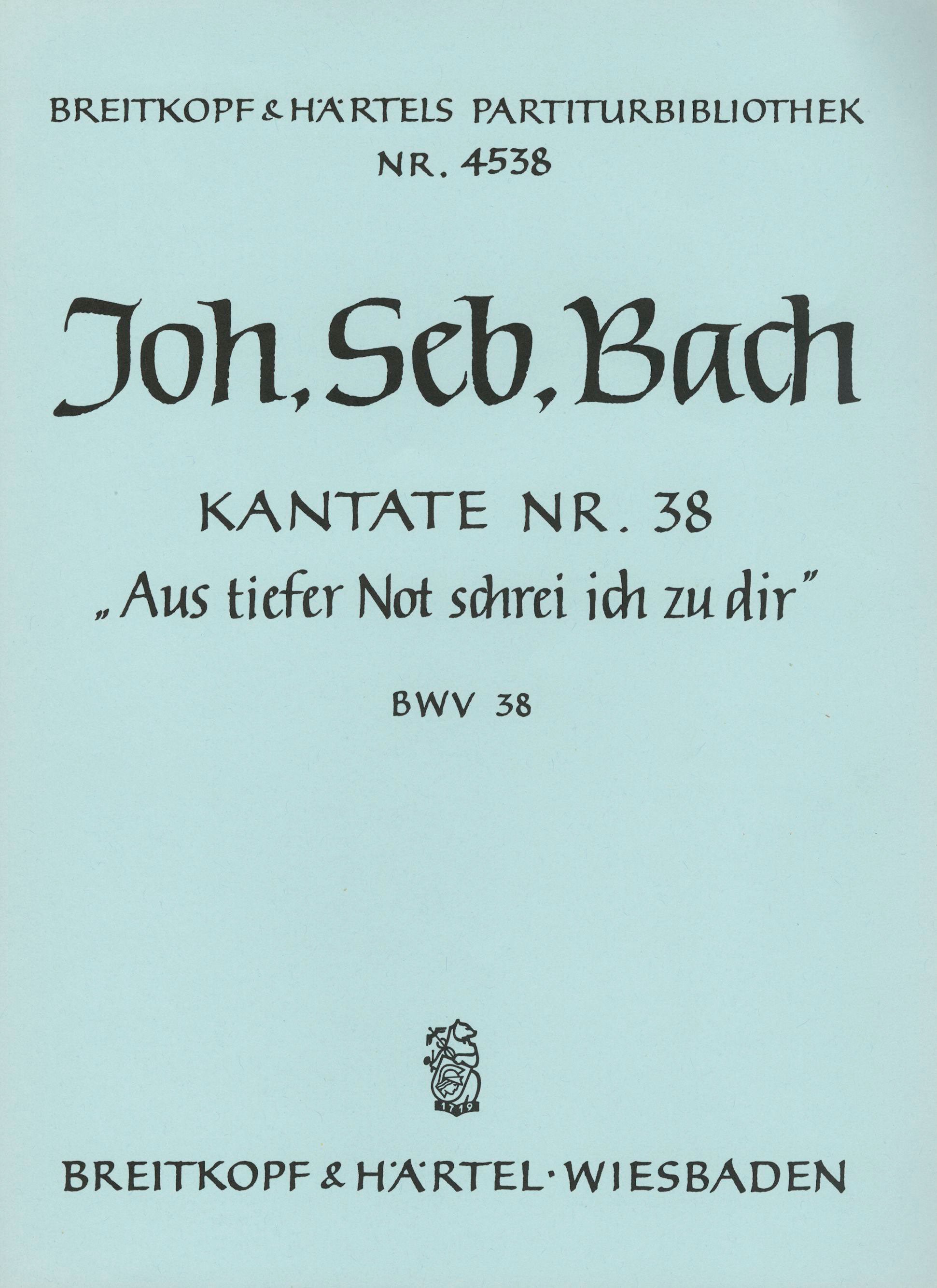 Cantata BWV 38 “Out of the deep call I to Thee” | 21st Sunday after Trinity – Urtext | solos,mix ch,orch | solos: SATB – choir: SATB – 0.2.0.0 – 0.0.4.0 – str – bc | Choir | Chorus | Chorus (with soloists) and orchestra | 20' | Baroque | Cantata | Sheet Music | full score | Hodel, Eva-Maria | | 20 | Softcover | 23 x 30,5 cm