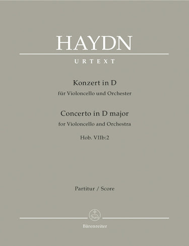 **Title**: Concerto for Violoncello and Orchestra in D major Hob. VIIb:2 | **Comments on Version**: Urtext from: Joseph Haydn Werke, G. Henle Verlag Munich | **Composer / Author**: Haydn, Joseph | **Editor**: Gerlach, Sonja | **Edition Type**: Score, Urtext edition | **Scoring/ Instrumentation**: Violoncello, Orchestra | **Binding**: Stapled | **Duration**: 00:22:00 | **Printing**: 7th printing 2022 | **Weight**: 282.0 g | **Format**: 31,0 x 24,3 cm | **Pages**: 61 S. | **Language**: EN | Sample: https://data.baerenreiter.com/NB/BA/BA04675_00_9790006501915_nb_lrg_01.jpg