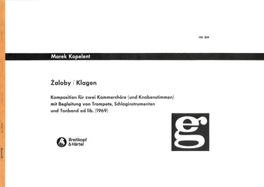 Żaloby / Klagen | Composition for 2 chamber choirs (and boy voices) with accompaniment of trumpet, percussion instruments and tape ad. lib. | mix ch,insts | SATBSATB -tTrp – perc – tape(ad lib.) | Choir | Chorus | Chorus and piano | 1969 | 14' | Music post-1945 | Sheet Music | choral score | | | 40 | Softcover | 43 x 29,7 cm