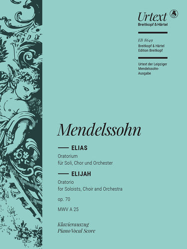 Elijah Op. 70 MWV A 25 | Oratorio – Urtext based on the Leipzig Mendelssohn Complete Edition | solos,mix ch,orch | solos: SSAATTBBB – choir: SSAATTBB – 2.2.2.2 – 4.2.3.0.oph – timp – org – str | Choir | Chorus | Chorus (with soloists) and piano | 160' | Romantic | Oratorio/passion | Piano/Vocal Score | piano vocal score | Schmidt, Christian Martin | | 256 | German / English | Softbound | 23 x 30,5 cm