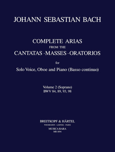 Complete Arias and Sinfonias | from the Cantatas, Masses, Oratorios | Vol. 2 (BWV 84, 89, 93, 98) | vce,ob,bc(pno) | Voice | Voice | Voice(s) with various inst. | Baroque | Aria | Symphony | Sheet Music | | S,ob,bc(pno) | | | 60 | stapled | 23 x 30,5 cm