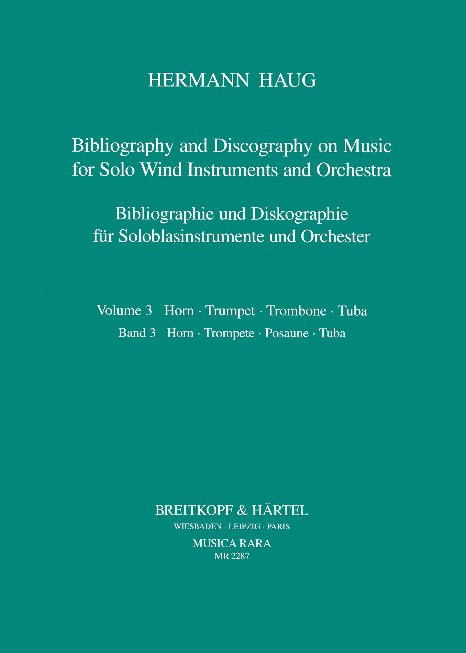 Bibliography and Discography on Music for Solo Wind Instruments and Orchestra | Vol. 3: Horn – Trumpet – Trombone – Tuba | Music pedagogy | Book | | | 312 | German / English | Softbound | 21 x 29,7 cm