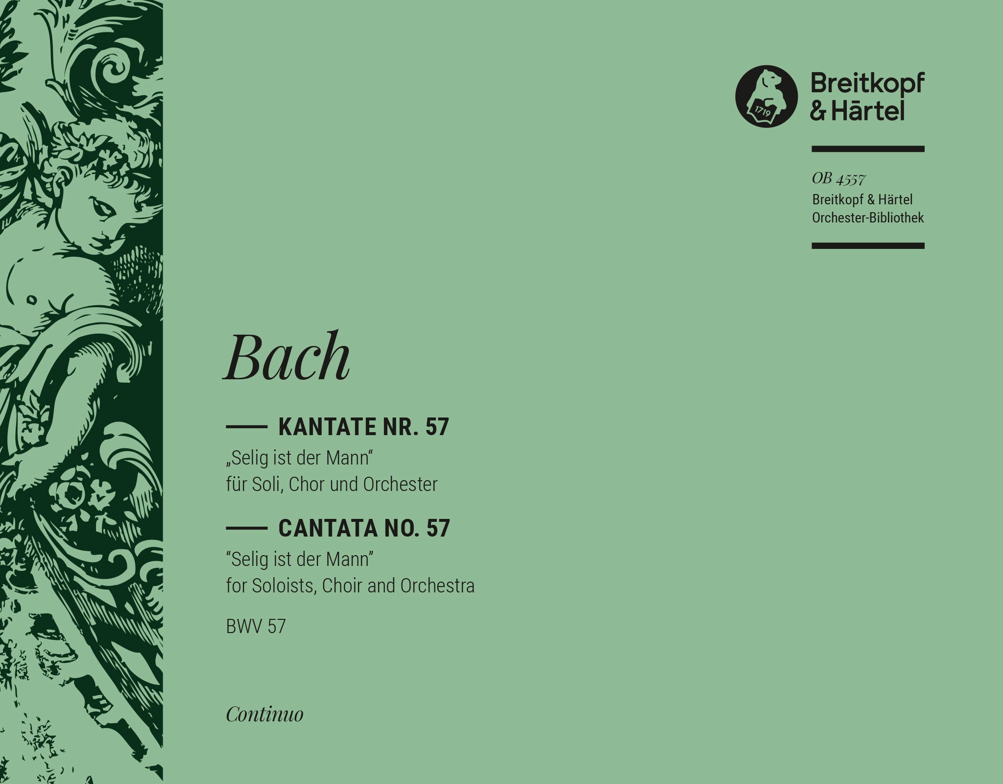 Cantata BWV 57 “Blessed is the man” | 2nd Day of Christmas [St. Stefanus Day] | S,B,mix ch,orch | solos: SB – choir: SATB – 0.2.ob.da cac.0.0 – 0.0.0.0 – str – bc | Choir | Chorus | Chorus (with soloists) and orchestra | 26' | Baroque | Cantata | Sheet Music | continuo realization | Rust, Wilhelm | Krüger, Dietrich (Cont-Auss) | 32 | stapled | 25 x 32 cm