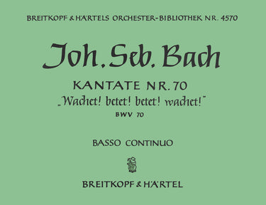 Cantata BWV 70 “Watch ye! pray ye! pray ye! watch ye!” | 26th Sunday after Trinity | solos,mix ch,orch | solos: SATB – choir: SATB – 0.1.0.1 – 0.1.0.0 – str – bc | Choir | Chorus | Chorus (with soloists) and orchestra | 30' | Baroque | Cantata | Sheet Music | continuo realization | | Dietrich Krüger (Cont-Auss.) | 36 | stapled | 30,5 x 23 cm