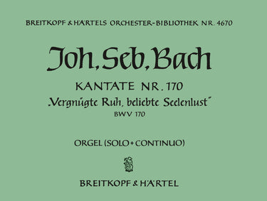 Cantata BWV 170 “O blessed rest, thou giv'st true happiness” | 6th Sunday after Trinity | A,orch | solo: A – 0.0.ob d’am.0.0 – 0.0.0.0 – org(solo) – str – bc | Voice | Voice | Voice(s) and orchestra | 23' | Baroque | Cantata | Sheet Music | solo org | (also continuo) | | Hempel, Horst | 24 | stapled | 30,5 x 23 cm