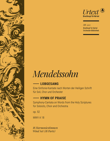 Hymn of Praise Op. 52 MWV A 18 | Symphony-Cantata – Urtext | solos,dble mix ch,orch | solos: SST – choir: SATB(SATB) – 2.2.2.2 – 4.2.3.0 – timp – org – str | Choir | Chorus | Chorus (with soloists) and orchestra | 65' | Romantic | Cantata | Sheet Music | wind parts | Konold, Wulf | | 224 | Folder | 25 x 32 cm