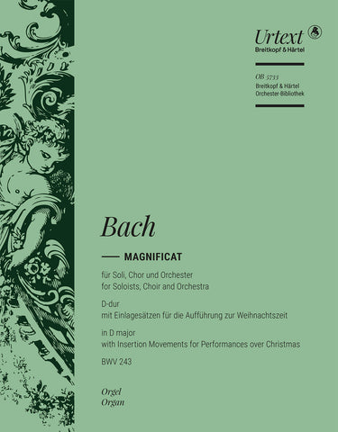 Magnificat in D major BWV 243 | with the Insertion Movements of the Version in E flat major for Performances over Christmas – Urtext | solos,mix ch,orch | solos: SSATB – choir: SSATB – 2.2(2ob d'am).0.2 – 0.3.0.0 – timp – str – bc | Choir | Chorus | Chorus (with soloists) and orchestra | 40' | Baroque | Psalm | Sheet Music | continuo realization | Erler, David | | 32 | stapled | 25 x 32 cm