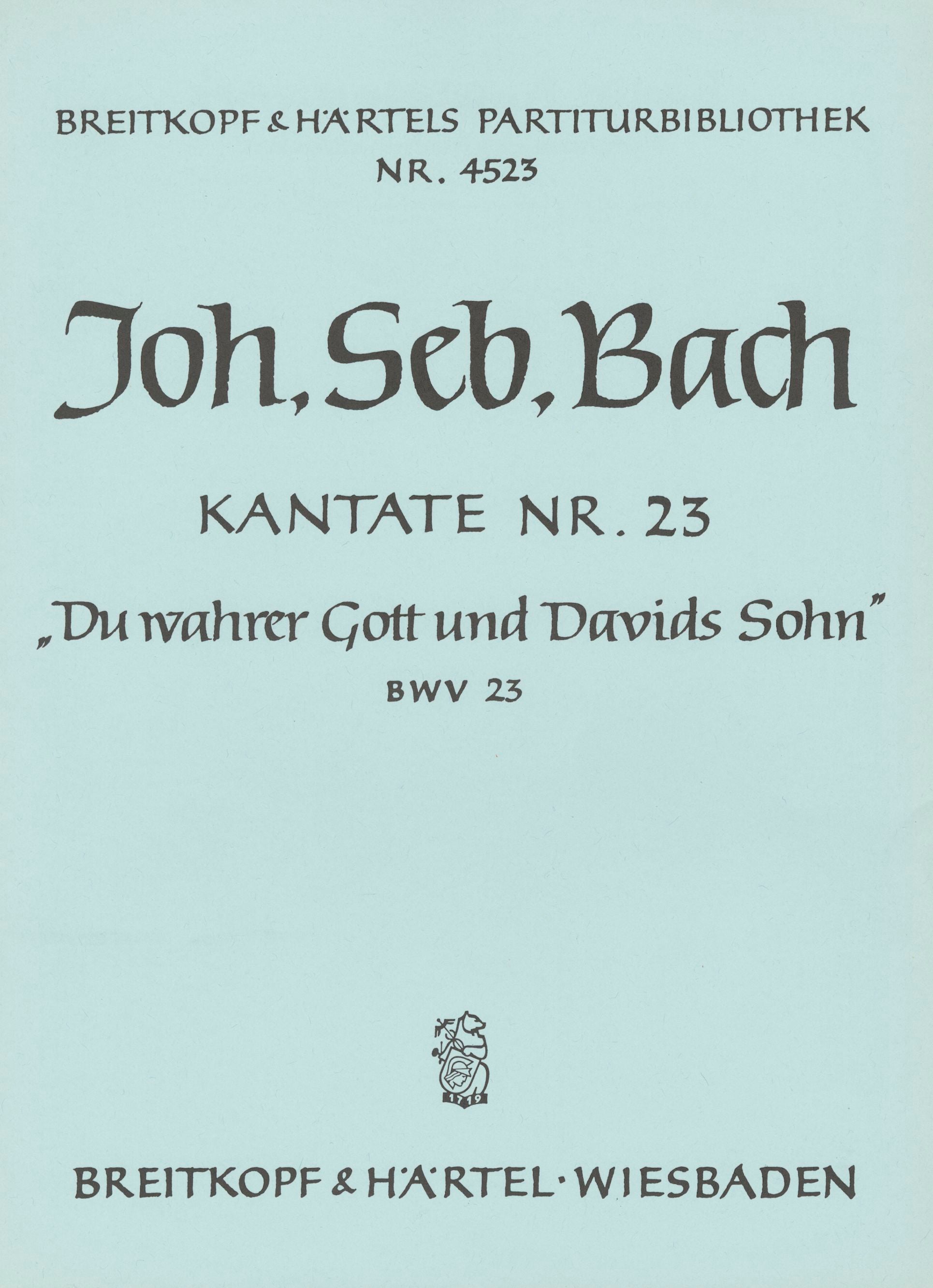 Cantata BWV 23 “Thou very God, and David's Son” | Quinquagesima Sunday [Estomihi] | solos,mix ch,orch | solos: SAT – choir: SATB – 0.2.0.0 – 0.0.corn.3.0 – str – bc | Choir | Chorus | Chorus (with soloists) and orchestra | 17' | Baroque | Cantata | Sheet Music | full score | | | 30 | Softcover | 23 x 30,5 cm