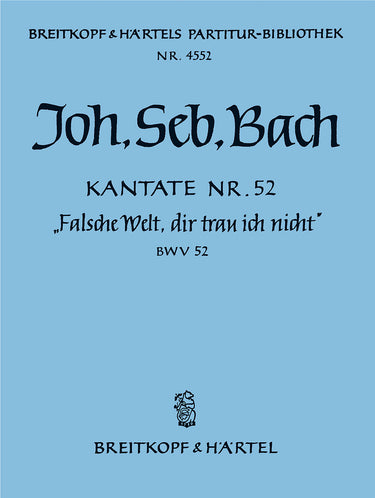 Cantata BWV 52 “Falsche Welt, dir trau ich nicht” | 23rd Sunday after Trinity | S,mix ch,orch | solo: S – choir: SATB – 0.3.0.1 – 2.0.0.0 – str – bc | Choir | Chorus | Chorus (with soloists) and orchestra | 16' | Baroque | Cantata | Sheet Music | full score | Rust, Wilhelm | | 24 | stapled | 23 x 30,5 cm