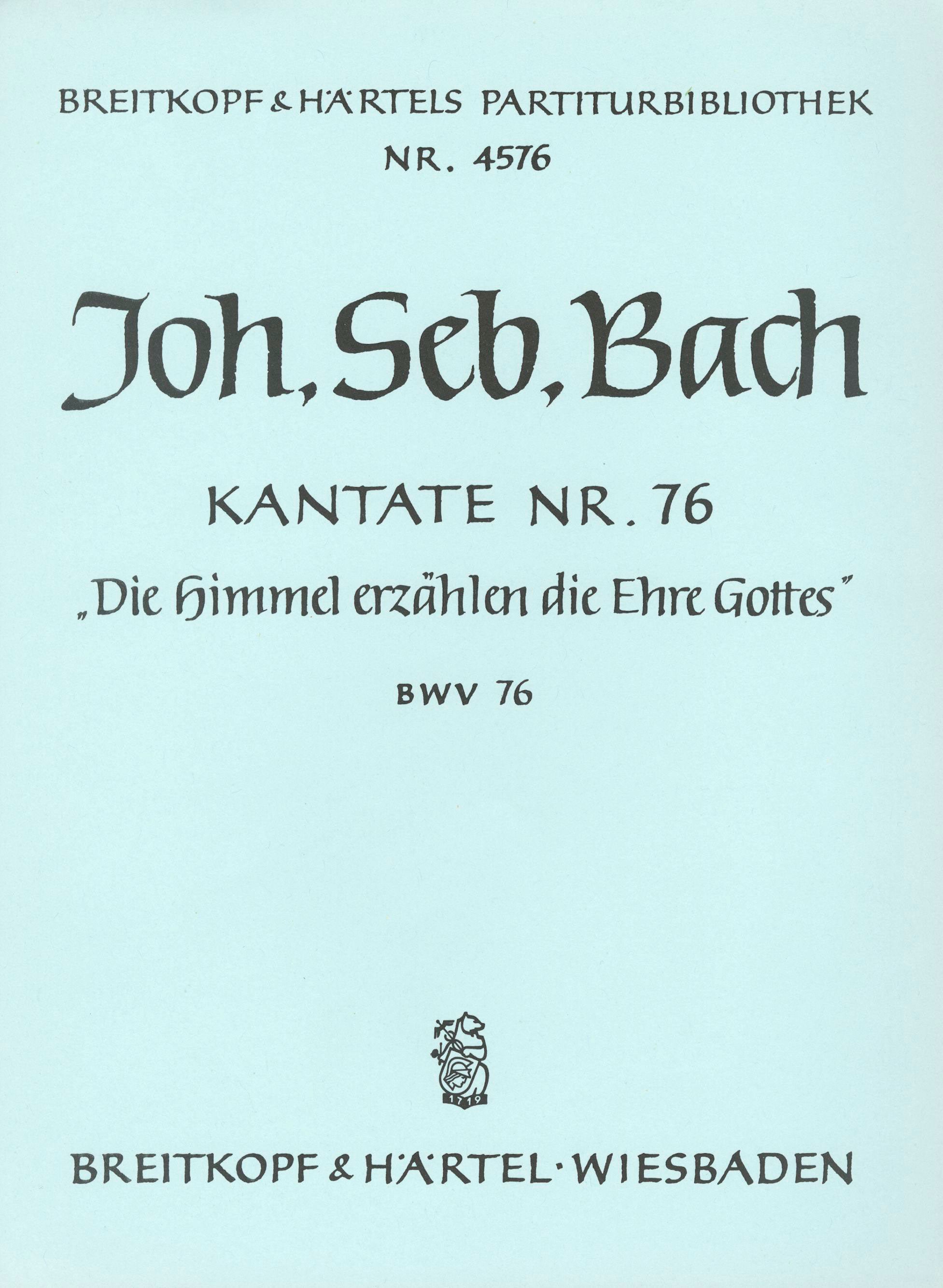 Cantata BWV 76 “The Heavens declare the glory of God” | 2nd Sunday after Trinity | solos,mix ch,orch | solos: SATB – choir: SATB – 0.2(ob d’am).0.0 – 0.1.0.0 – str(vagb) – bc | Choir | Chorus | Chorus (with soloists) and orchestra | 35' | Baroque | Cantata | Sheet Music | full score | | | 44 | stapled | 23 x 30,5 cm