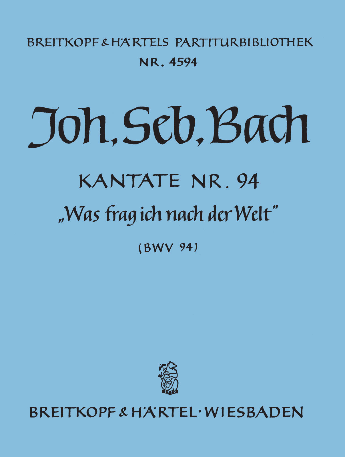 Cantata BWV 94 “Was frag ich nach der Welt” | 9th Sunday after Trinity | solos,mix ch,orch | solos: SATB – choir: SATB – 1.2(ob d’am).0.0 – 0.0.0.0 – str – bc | Choir | Chorus | Chorus (with soloists) and orchestra | 29' | Baroque | Cantata | Sheet Music | full score | | | 32 | stapled | 23 x 30,5 cm