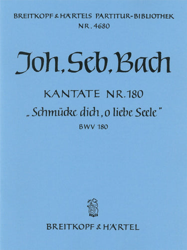 Cantata BWV 180 “Soul, array thyself with gladness” | 20th Sunday after Trinity | solos,mix ch,orch | solos: SATB – choir: SATB – 1.2rec.1.ob da cac.0.0 – 0.0.0.0 – str(vc picc) – bc | Choir | Chorus | Chorus (with soloists) and orchestra | 25' | Baroque | Cantata | Sheet Music | full score | | | 28 | stapled | 23 x 30,5 cm