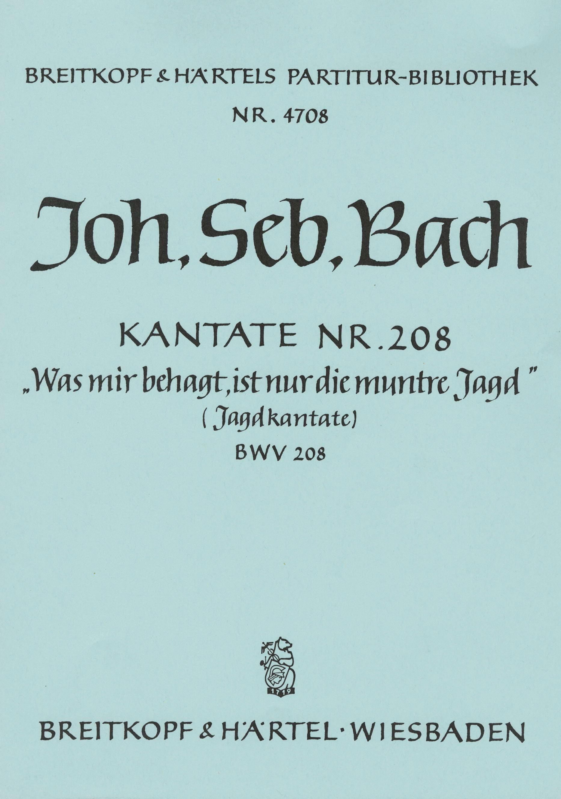 Cantata BWV 208 “Was mir behagt, ist nur die muntre Jagd” | Hunting Cantata | solos,mix ch,orch | solos: SSTB – choir: SSTB – 0.2rec.2.ob da cac 0.1 – 2.0.0.0 – str – bc | Choir | Chorus | Chorus (with soloists) and orchestra | 40' | Baroque | Cantata | Sheet Music | full score | | | 40 | Softcover | 23 x 30,5 cm