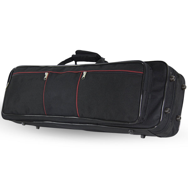Polyester cases, padded, velvet lining, filled with polyurethane. Detachable backpack , pocket and handles. External size: 69x21,5x14cm. Internal length: 66cm. Weight:2,37Kg.