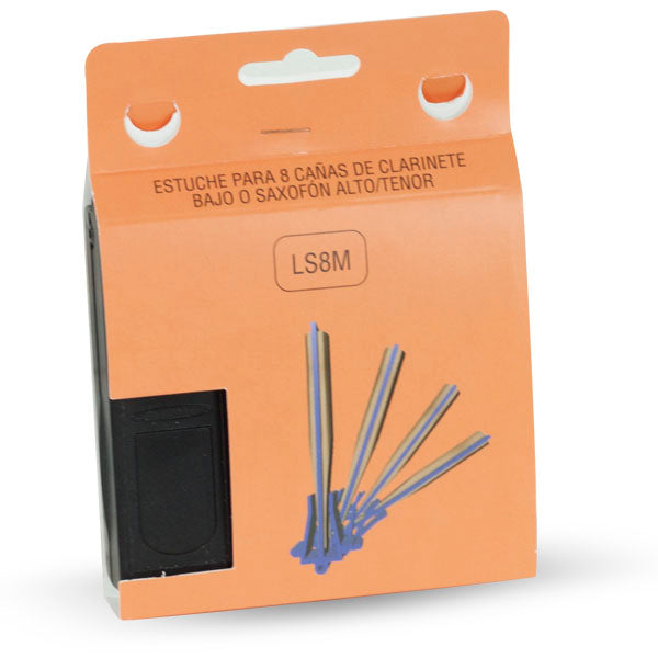 Plastic case for 8 cane of alto saxopone, tenor saxophone, alto clarinet & bass clarinet. External size: 11x11x2cm.
