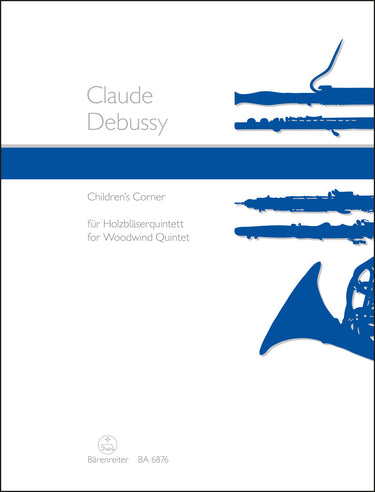 **Title**: Children's Corner | **Subtitle**: Arrangement for wind quintet of the piano suite | **Composer / Author**: Debussy, Claude | **Arranger**: Linckelmann, Joachim | **Editor**: Linckelmann, Joachim | **Edition Type**: Score, Set of parts | **Scoring/ Instrumentation**: Flute, Oboe, Clarinet, Horn, Bassoon | **Binding**: Stapled | **Level of Difficulty**: 4.0 | **Printing**: 5th printing 2021 | **Weight**: 232.0 g | **Format**: 30,0 x 23,0 cm | **Pages**: 16/8/7/8/7/7 S. | **Language**: EN | Sample: https://data.baerenreiter.com/NB/BA/BA06876_00_9790006500833_nb_lrg_01.jpg