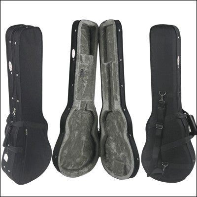 Styrofoam cases filled polyester. Velvet lining. Handle, pocket and shoulder strap.