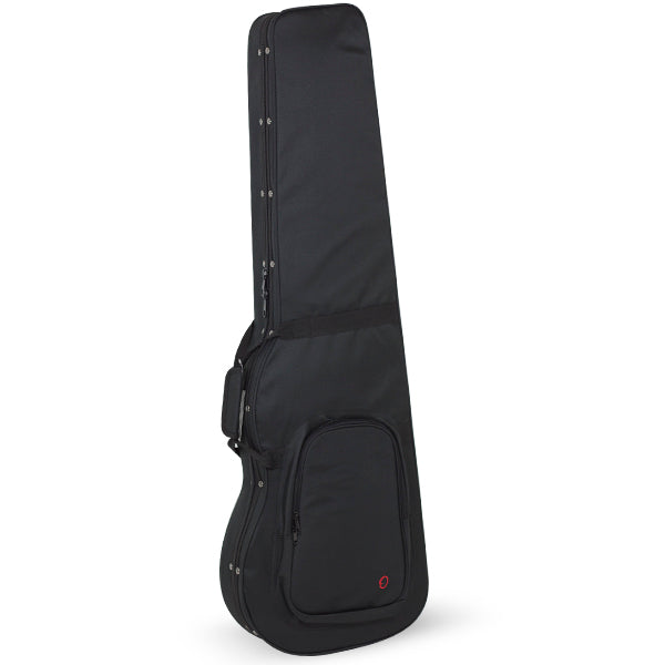 Plastified polyester cases, styrofoam padded and blue velour lining. Padded fix backpack, handles and pocket. External size: 124x40x35x12cm. Internal size: 119x35x28,5x7,5cm. Weight: 2,10Kg. Electric bass. Styrofoam Series.