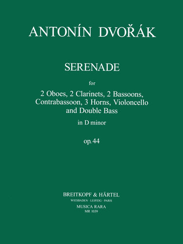 Serenade in D minor Op. 44 | wind ens,vc,db | 2ob,2clar,2bsn,K-bsn,3hn,vc,db | Chamber music | Ensemble | Ensemble 10 insts and more | Romantic | Serenade/divertimento | Sheet Music | set of parts | | | 82 | Folder | 23 x 30,5 cm