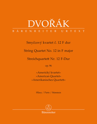 **Title**: String Quartet no. 12 in F major op. 96 "American Quartet" | **Comments**: Replaces H 1594 | **Composer / Author**: Dvorak, Antonin | **Editor**: Kube, Michael | **Edition Type**: Set of parts, Urtext edition | **Instrumentation**: String quartet | **Scoring/ Instrumentation**: Violins (2), Viola, Violoncello | **Binding**: in a folder | **Level of Difficulty**: 2.0 | **Weight**: 298.0 g | **Format**: 31,0 x 24,3 cm | **Pages**: 13/13/13/13 S. | **Language**: EN | Sample: https://data.baerenreiter.com/NB/BA/BA11538_00_9790260108974_nb_lrg_01.jpg