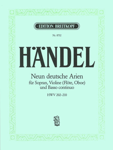 9 German Arias HWV 202-210 | Urtext | S,vl(fl,ob),bc | Voice | Voice | Voice(s) with various inst. | Baroque | Aria | Sheet Music | Burrows, Donald | | 108 | Softbound | 23 x 30,5 cm