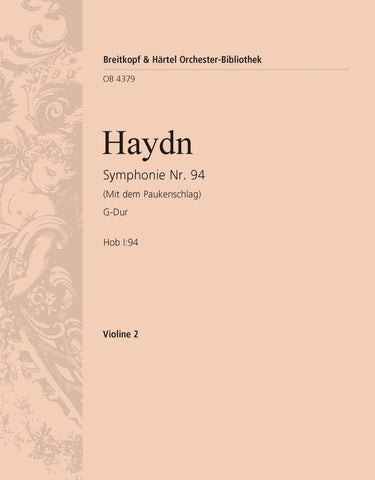 Symphony No. 94 in G major Hob I:94 | Surprise Symphony | orch | 2.2.0.2. – 2.2.0.0. – timp – str | Orchestra | Orchestra | Orchestra | 25' | Classical | Symphony | Sheet Music | violin 2 | | | 8 | stapled | 23 x 30,5 cm