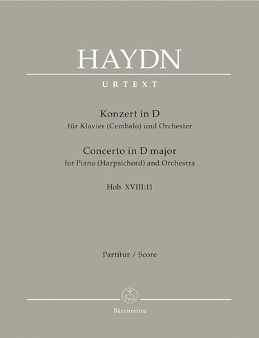 **Title**: Piano Concerto in D major Hob. XVIII:11 | **Comments on Version**: Urtext from the Joseph Haydn Works, G. Henle Verlag Munich | **Composer / Author**: Haydn, Joseph | **Editor**: Walter, Horst / Wackernagel, Bettina | **Edition Type**: Score, Urtext edition | **Instrumentation**: Piano, Orchestra | **Scoring/ Instrumentation**: Harpsichord, Piano, Orchestra | **Binding**: Stapled | **Duration**: 00:20:00 | **Printing**: 7th printing 2020 | **Weight**: 238.0 g | **Format**: 31,0 x 24,3 cm | **Pages**: 50 S. | **Language**: EN | Sample: https://data.baerenreiter.com/NB/BA/BA04679_00_9790006503407_nb_lrg_01.jpg