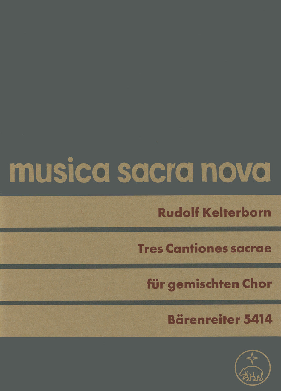 **Title**: Tres Cantiones sacrae auf Texte aus den "Confessiones" des Augustinus (1967) | **Subtitle**: Quis mihi dabit - Ei mihi! - Domine deus, pacem da nobis. Can be used in combination with the "Sonata sacra" for 10 brass instruments (BA 4433) | **Comments**: World Premiere 12/04/1969, Kassel | **Composer / Author**: Kelterborn, Rudolf | **Edition Type**: Choral score | **Instrumentation**: Choir | **Scoring/ Instrumentation**: Mixed choir: SSAATTBB | **Binding**: Stapled | **Level of Difficulty**: 4.0 | **Duration**: 00:07:30 | **Weight**: 65.0 g | **Format**: 29,0 x 19,0 cm | **Pages**: 22 S. | **Language**: EN | Sample: https://data.baerenreiter.com/NB/BA/BA05414_00_9790006470877_nb_lrg_01.jpg