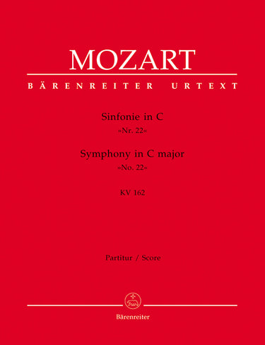 **Title**: Symphony no. 22 in C major K. 162 | **Composer / Author**: Mozart, Wolfgang Amadeus | **Editor**: Beck, Hermann | **Edition Type**: Score, Urtext edition | **Instrumentation**: Chamber orchestra | **Scoring/ Instrumentation**: Orchestra | **Binding**: Stapled | **Duration**: 00:09:00 | **Weight**: 90.0 g | **Format**: 31,0 x 24,2 cm | **Pages**: 16 S. | **Language**: EN | Sample: https://data.baerenreiter.com/NB/BA/BA04743_00_9790006455027_nb_lrg_01.jpg