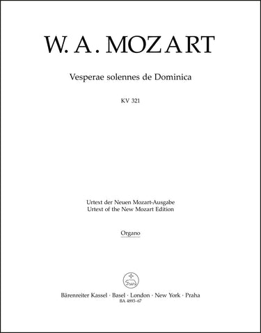 **Title**: Vesperae solennes de Dominica K. 321 | **Composer / Author**: Mozart, Wolfgang Amadeus | **Editor**: Fellerer, Karl Gustav / Schroeder, Felix | **Edition Type**: Part, Urtext edition | **Scoring/ Instrumentation**: Organ | **Binding**: Stapled | **Weight**: 83.0 g | **Format**: 32,5 x 25,5 cm | **Pages**: 20 S. | **Language**: EN | Sample: https://data.baerenreiter.com/NB/BA/BA04893_67_9790006459636_nb_lrg_01.jpg