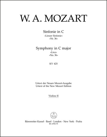 **Title**: Symphony no. 36 in C major K. 425 "Linz Symphony" | **Composer / Author**: Mozart, Wolfgang Amadeus | **Editor**: Schnapp, Friedrich | **Edition Type**: Part, Urtext edition | **Scoring/ Instrumentation**: 2. Violin | **Binding**: Stapled | **Weight**: 51.0 g | **Format**: 32,5 x 25,5 cm | **Pages**: 11 S. | **Language**: EN | Sample: https://data.baerenreiter.com/NB/BA/BA04704_75_9790006453382_nb_lrg_01.jpg