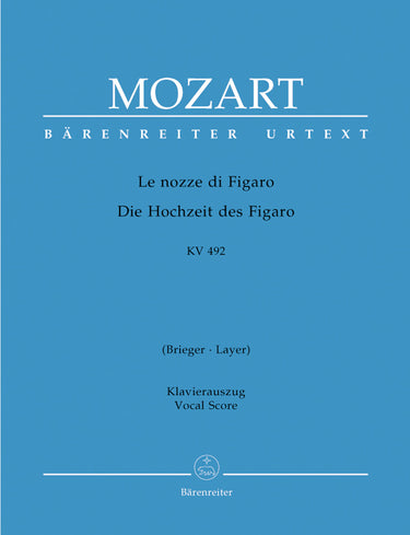**Title**: The Marriage of Figaro K. 492 | **Subtitle**: Opera buffa in four acts | **Comments**: German translation by Nicolas Brieger and Friedemann Layer | **Composer / Author**: Mozart, Wolfgang Amadeus | **Arranger**: Epplée, Eugen | **Libretto/Text by**: Da Ponte, Lorenzo | **Editor**: Finscher, Ludwig | **Preface**: Leisinger, Ulrich | **Edition Type**: Vocal Score, Urtext edition | **Instrumentation**: Soloists, Choir, Orchestra | **Binding**: Paperback | **Duration**: 03:00:00 | **Printing**: 9th printing 2021 | **Language of Text Part**: German, Italian | **Weight**: 1566.0 g | **Format**: 27,0 x 19,0 cm | **Pages**: XIX, 557 S. | **Language**: EN | Sample: https://data.baerenreiter.com/NB/BA/BA04565_92_9790006504497_nb_lrg_01.jpg