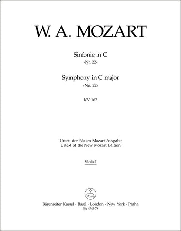 **Title**: Symphony no. 22 in C major K. 162 | **Composer / Author**: Mozart, Wolfgang Amadeus | **Editor**: Beck, Hermann | **Edition Type**: Part, Urtext edition | **Scoring/ Instrumentation**: 1. Viola | **Binding**: Stapled | **Weight**: 35.0 g | **Format**: 32,5 x 25,5 cm | **Pages**: 5 S. | **Language**: EN | Sample: https://data.baerenreiter.com/NB/BA/BA04743_79_9790006455065_nb_lrg_01.jpg