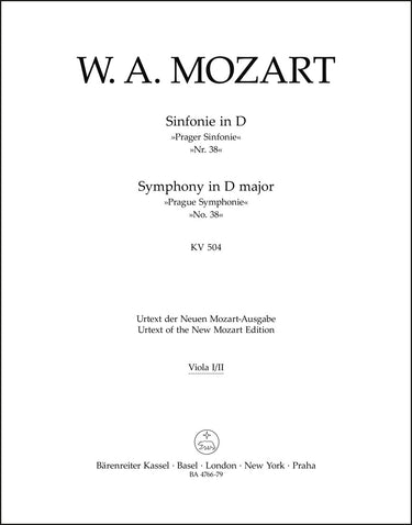 **Title**: Symphony no. 38 in D major K. 504 "Prague Symphony" | **Composer / Author**: Mozart, Wolfgang Amadeus | **Editor**: Somfai, László | **Edition Type**: Part, Urtext edition | **Scoring/ Instrumentation**: 1. Viola, 2. Viola | **Binding**: Stapled | **Weight**: 33.0 g | **Format**: 32,5 x 25,5 cm | **Pages**: 7 S. | **Language**: EN | Sample: https://data.baerenreiter.com/NB/BA/BA04766_79_9790006455980_nb_lrg_01.jpg