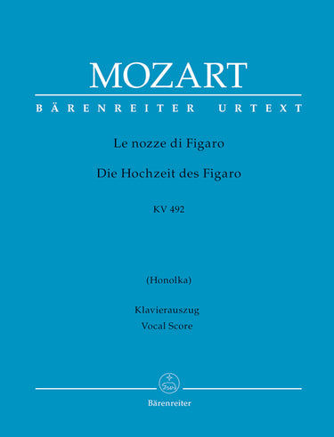 **Title**: The Marriage of Figaro K. 492 | **Subtitle**: Opera buffa in 4 acts | **Comments on Version**: Continuo realisation in the secco recitatives: Heinz Moehn | **Composer / Author**: Mozart, Wolfgang Amadeus | **Editor**: Finscher, Ludwig | **Edition Type**: Vocal Score, Urtext edition | **Binding**: Hardback | **Duration**: 03:00:00 | **Printing**: 1st printing 2020 | **Language of Text Part**: Italian, German | **Weight**: 1696.0 g | **Format**: 57,5 x 20,0 cm | **Pages**: XVIII, 557 S. | **Language**: EN | Sample: https://data.baerenreiter.com/NB/BA/BA04565_93_9790006568963_nb_lrg_01.jpg